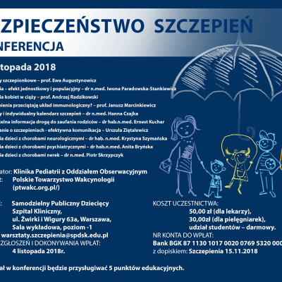 W imieniu Organizatorów – Klinika Pediatrii z Oddziałem Obserwacyjnym Warszawskiego Uniwersytetu Medycznego mamy zaszczyt zaprosić Państwa na Konferencję „Bezpieczeństwo szczepień”.