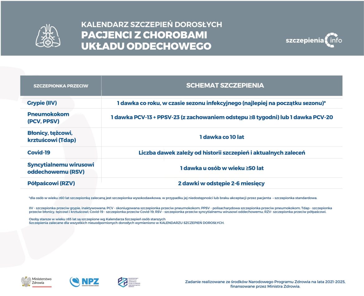 Kalendarz szczepień dorosłych - Pacjenci z chorobami układu oddechowego