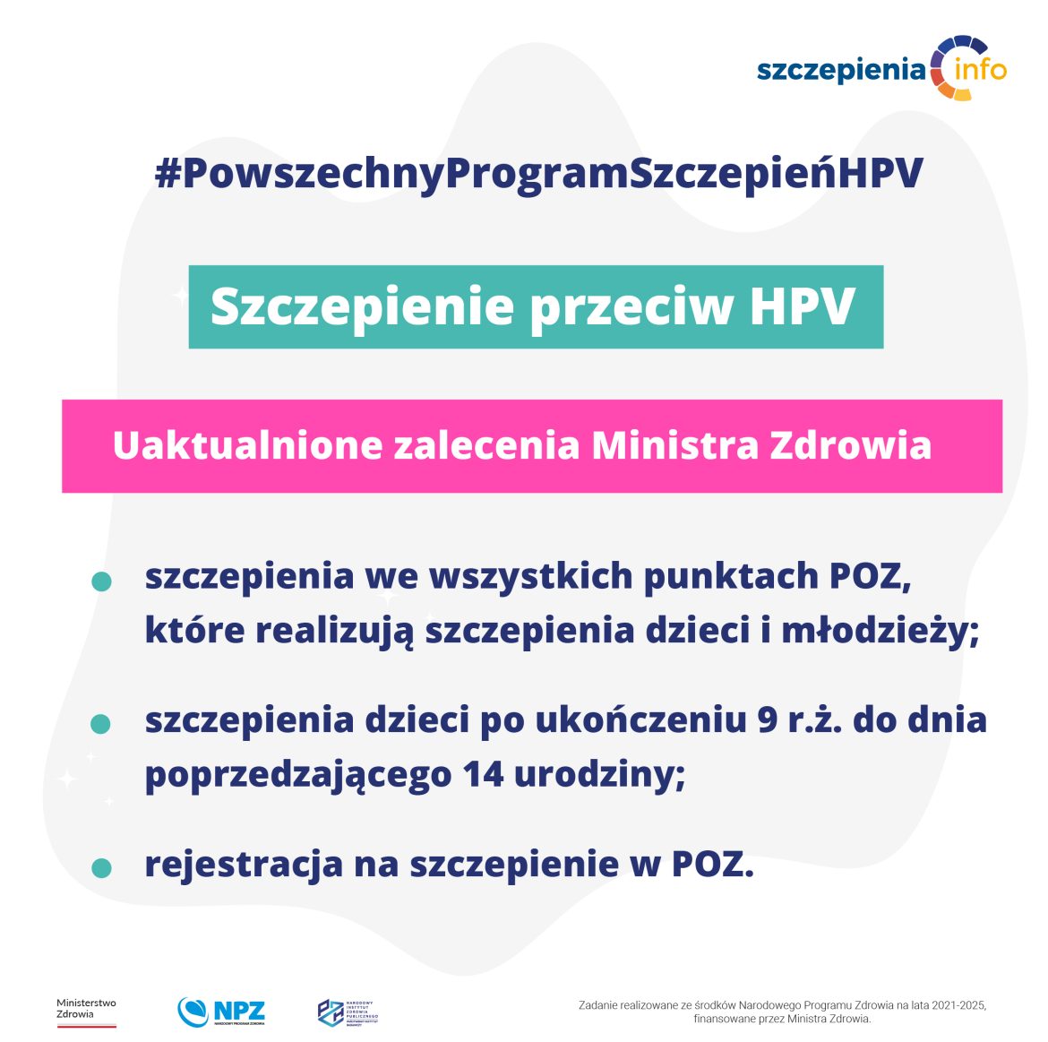 Zalecenia Ministra Zdrowia dotyczące realizacji szczepień przeciw ludzkiemu wirusowi brodawczaka (HPV) w ramach powszechnego programu szczepień (dla świadczeniodawców).