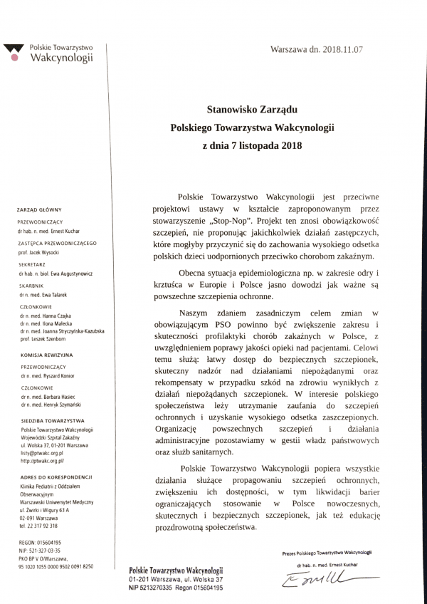 Stanowisko Polskiego Towarzystwa Wakcynologii
