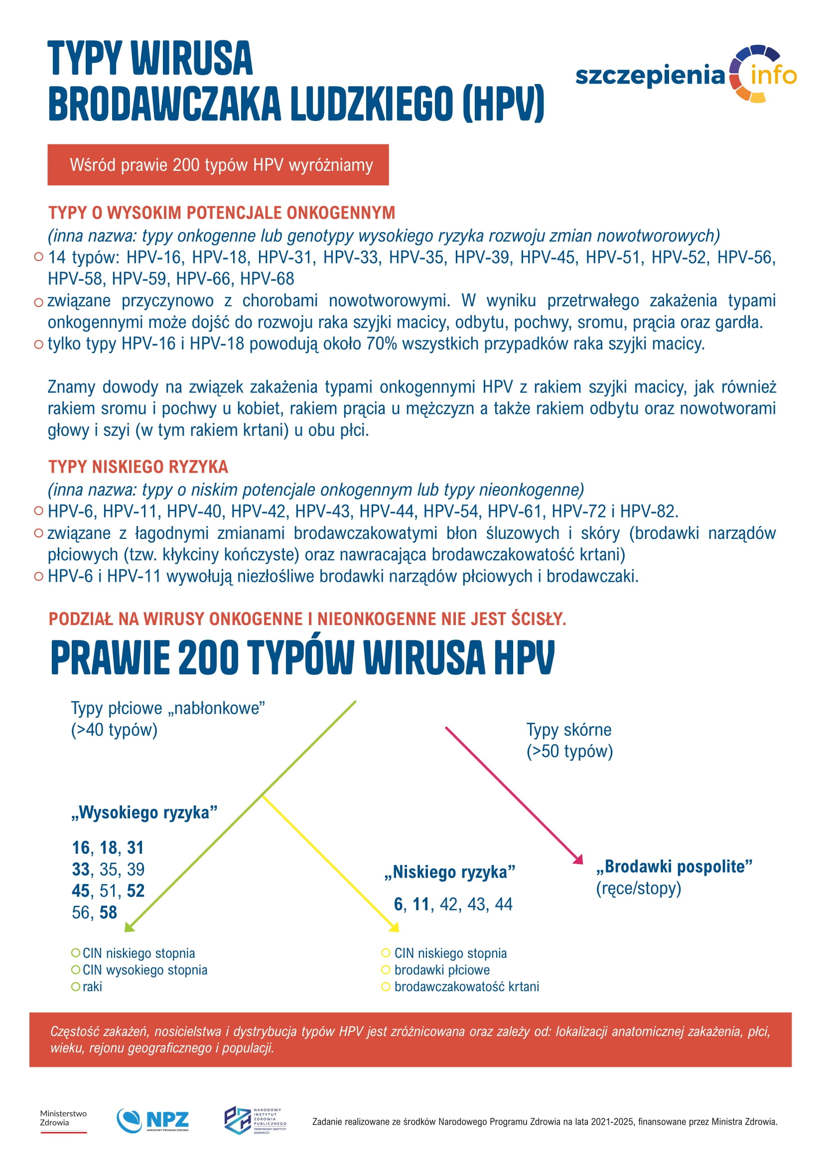 Wśród niemal 200 typów wirusa HPV wyróżniamy:
