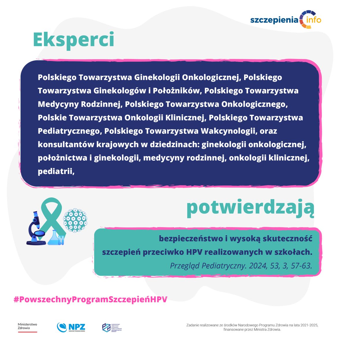 Stanowisko Towarzystw Naukowych i Konsultantów Krajowych w sprawie realizacji w szkołach szczepień ochronnych przeciwko ludzkiemu wirusowi brodawczaka. Przegląd Pediatryczny. 2024, 53, 3, 57-63.