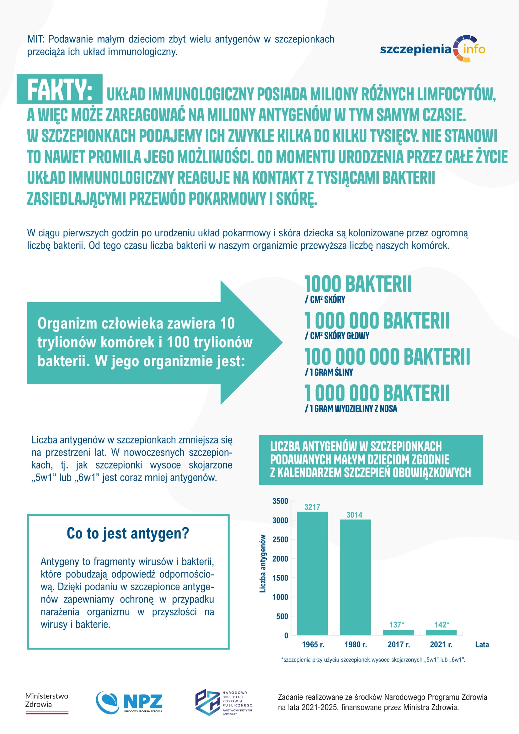 Gdyby dziecko otrzymało w tym samym czasie 10 różnych szczepionek każda po 100 antygenów, zużyłoby zaledwie 0,1% możliwości swojego układu immunologicznego.