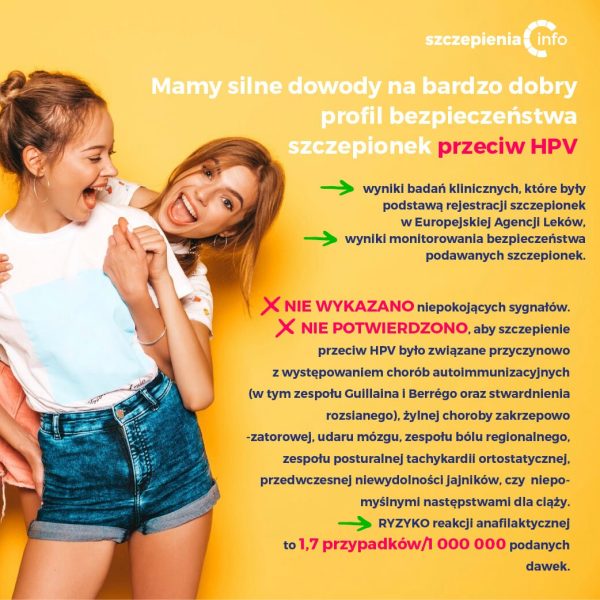 NIE POTWIERDZONO, aby szczepienie przeciw HPV było związane przyczynowo z występowaniem chorób autoimmunizacyjnych (w tym zespołu Guillaina i Berrégo oraz stwardnienia rozsianego), żylnej choroby zakrzepowo- zatorowej, udaru mózgu, zespołu bólu regionalnego, zespołu posturalnej tachykardii ortostatycznej, przedwczesnej niewydolności jajników, czy niepomyślnymi następstwami dla ciąży.