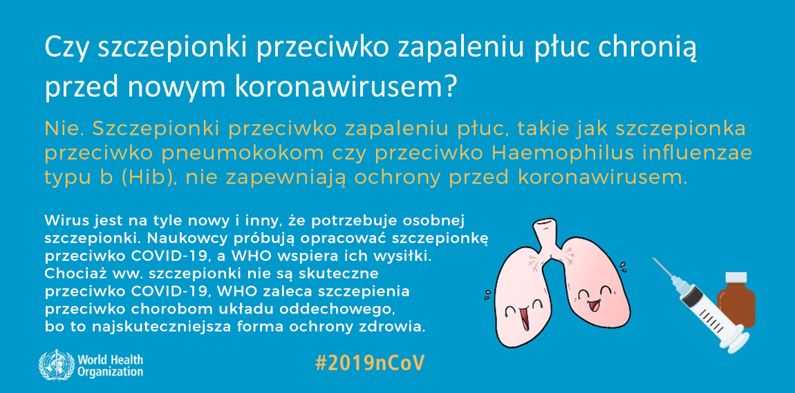 Chociaż szczepionki przeciw pneumokokom oraz szczepionki przeciw Hib nie są skuteczne przeciwko COVID-19, eksperci WHO zalecają szczepienia przeciwko chorobom układu oddechowego, bo to najskuteczniejsza forma ochrony zdrowia.