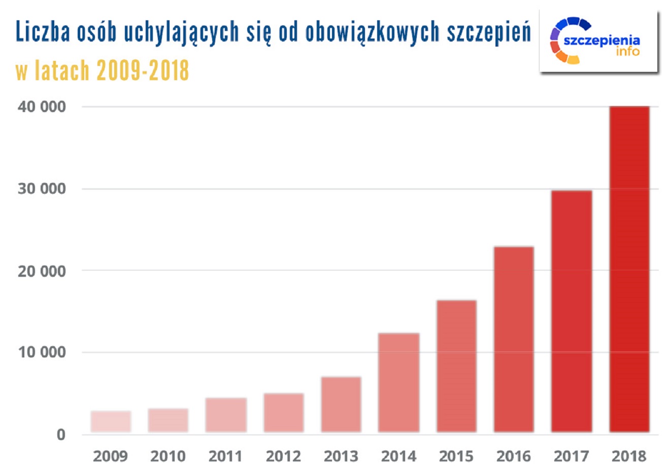 W latach 2003- 2009 odnotowano od 3077 do 4993 przypadków uchylania się od obowiązkowych szczepień (liczba dzieci i młodzieży) (2003 roku- 4893 uchyleń; 2004 roku- 4392 uchylenia; 2005 roku- 4326 uchyleń, 2006 roku – 3435 uchyleń, 2007 roku- 3250 uchyleń, 2008 roku- 3188 uchyleń, 2009 roku- 3077 uchyleń.