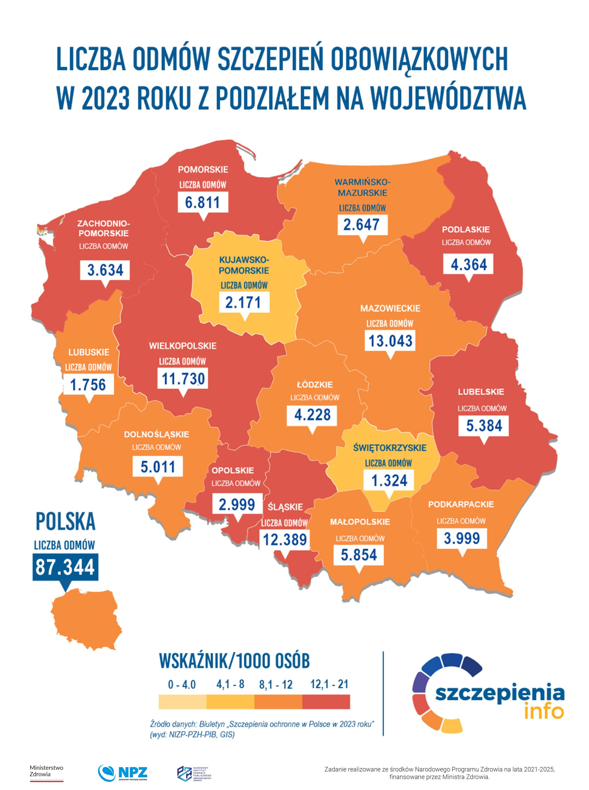 Odmowa kilku szczepień w przypadku jednego dziecka jest liczona jako 1 odmowa.