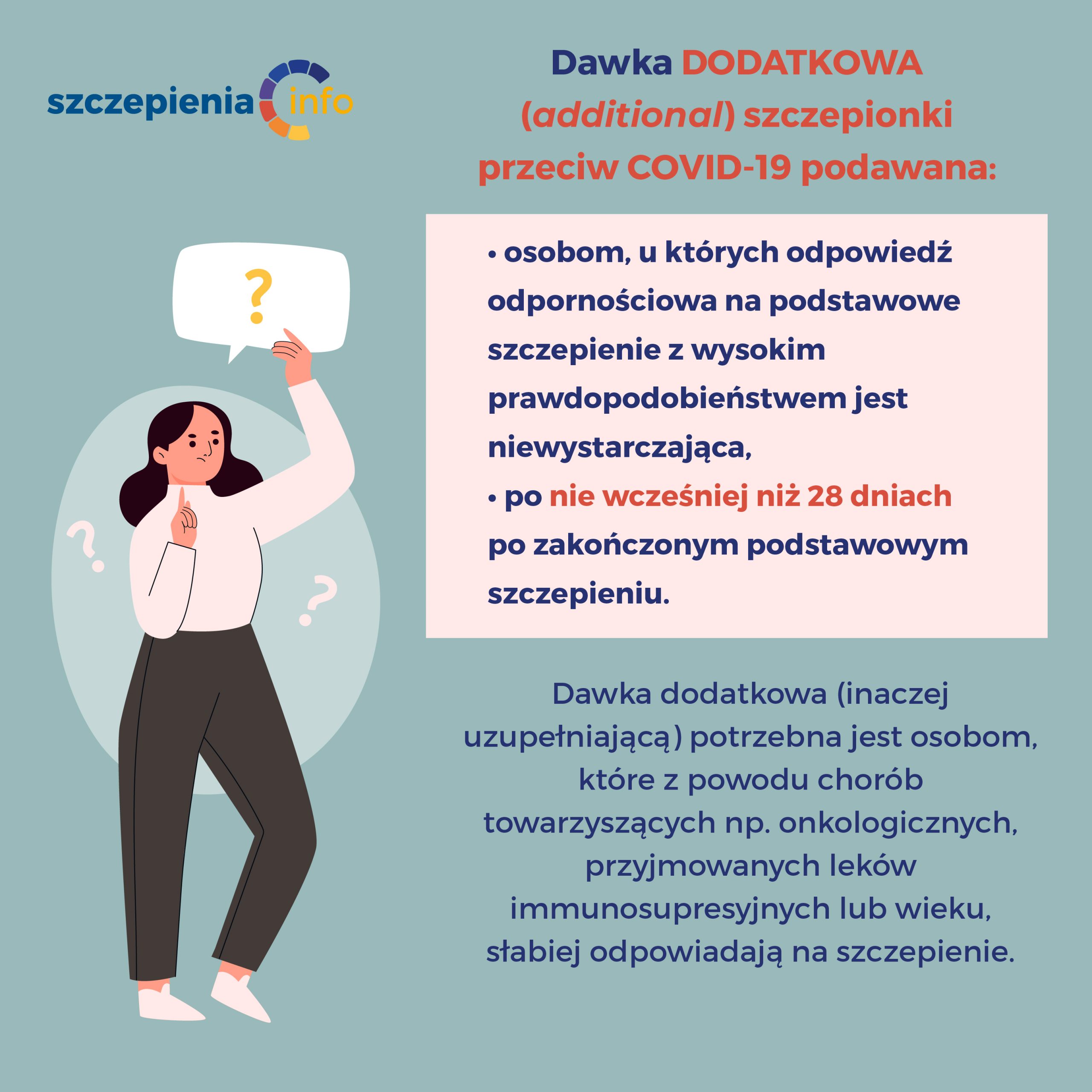 Dawka DODATKOWA (additional dose) szczepionki (inaczej dawka uzupełniająca):