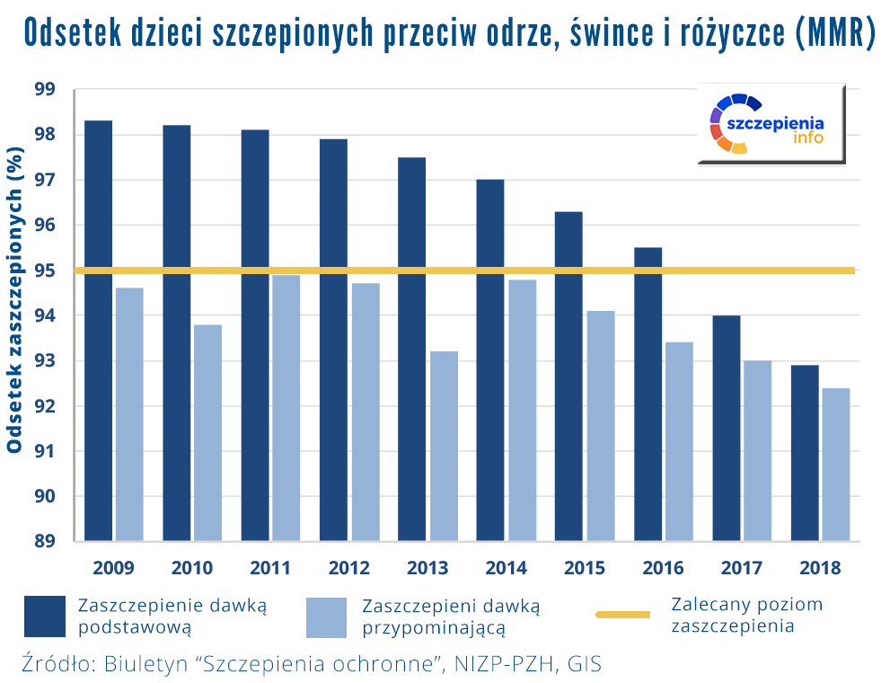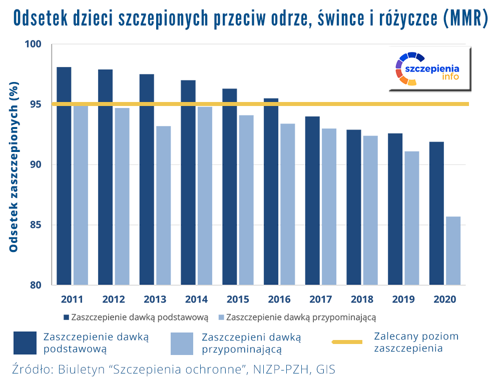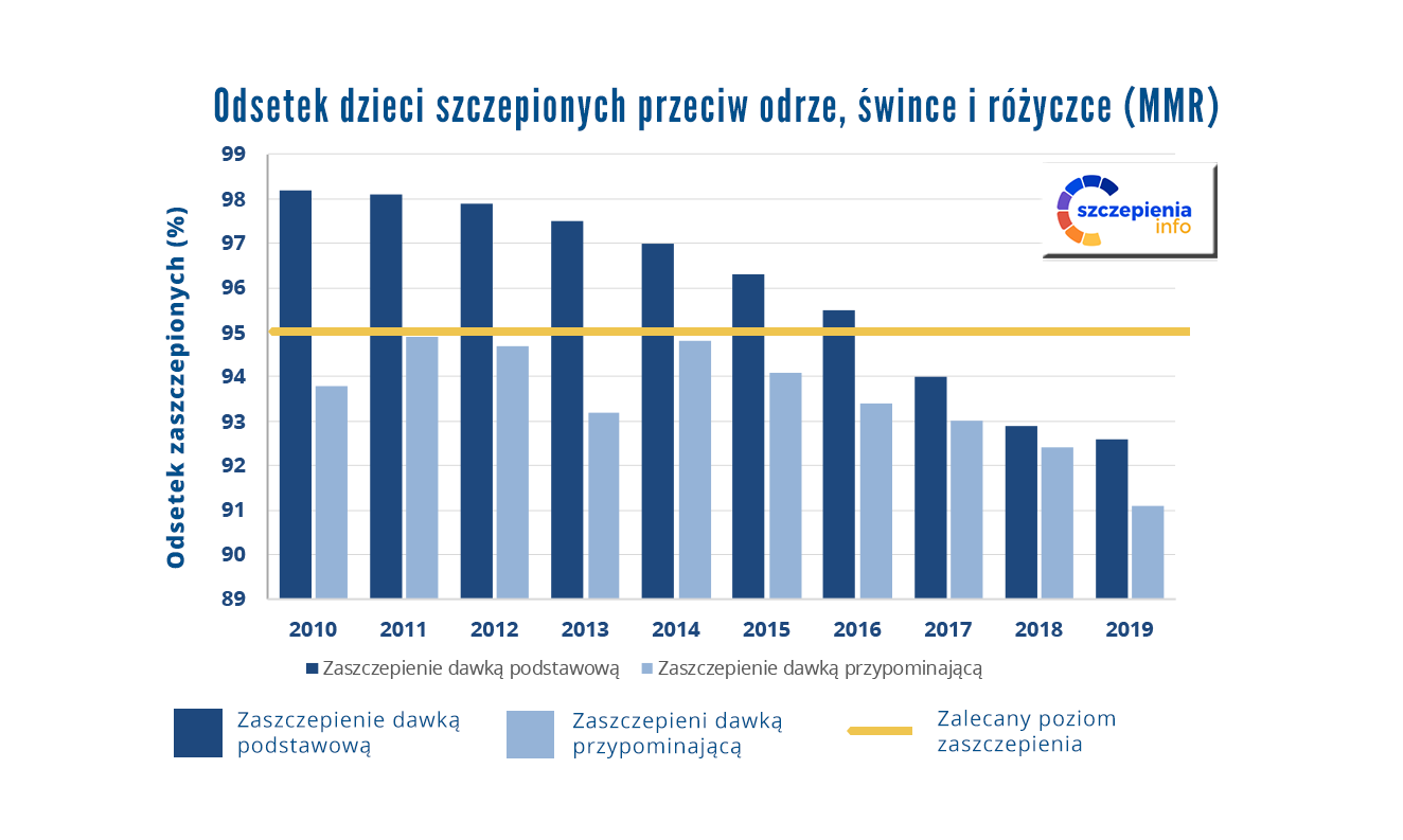 Przez wiele lat utrzymywano wysoki stan zaszczepienia przeciw odrze na poziomie 98-99%. W ostatnim dziesięcioleciu obserwujemy w Polsce niepokojący trend zniżkowy odsetka dzieci zaszczepionych przeciw odrze, śwince i różyczce (szczepionką MMR). Spadek zaszczepionych dzieci ma szczególne znaczenie w przypadku odry, która należy do jednej z najbardziej zakaźnych chorób, która do utrzymania odporności populacyjnej wymaga aż 95% stanu zaszczepienia.