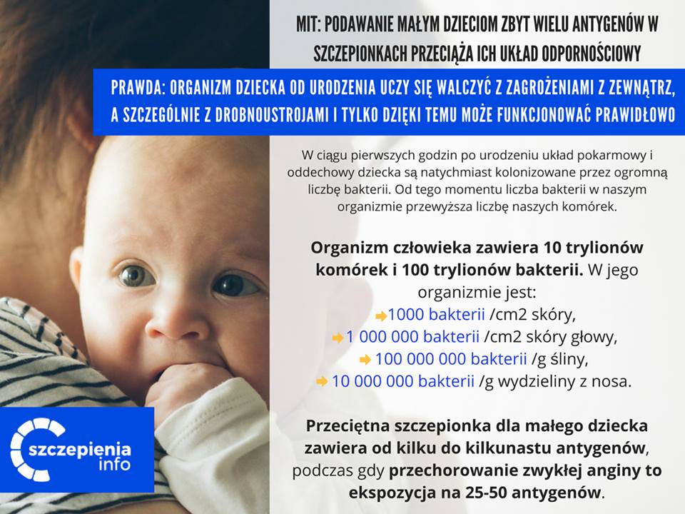 Tak, w wielu badaniach potwierdzono bezpieczeństwo takiego postępowania nawet u najmłodszych dzieci, w tym wcześniaków. Nie należy się też obawiać nadmiernego „obciążenia” układu odporności, bo nawet podanie kilku szczepionek tego samego dnia angażuje jedynie ułamek mechanizmów immunologicznych organizmu. Co więcej, niektóre szczepionki skojarzone (te zawierające bezkomórkowy składnik krztuścowy) zawierają o wiele mniej antygenów (białek) niż szczepionka przeciw błonicy, tężcowi, krztuścowi z pełnokomórkowym składnikiem krztuśca.