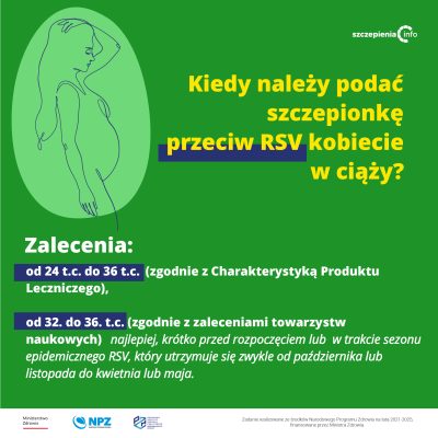 Szczepionkę przeciw RSV w okresie ciąży zaleca się podać optymalnie 1-2 miesiące przed rozpoczęciem sezonu i do 2-3 miesięcy przed przewidywanym zakończeniem sezonu.