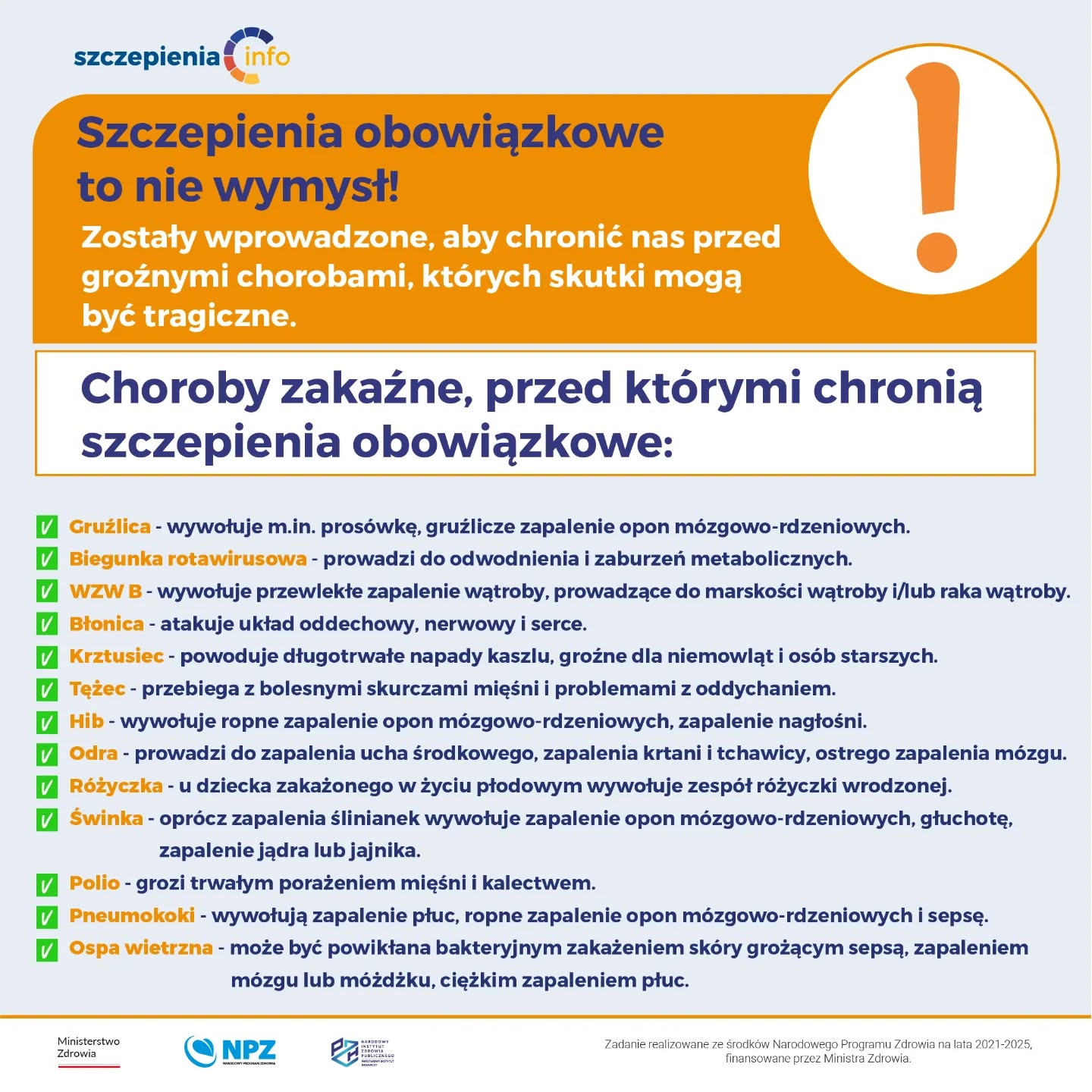Choroby zakaźne, przed którymi chronią szczepienia obowiązkowe: