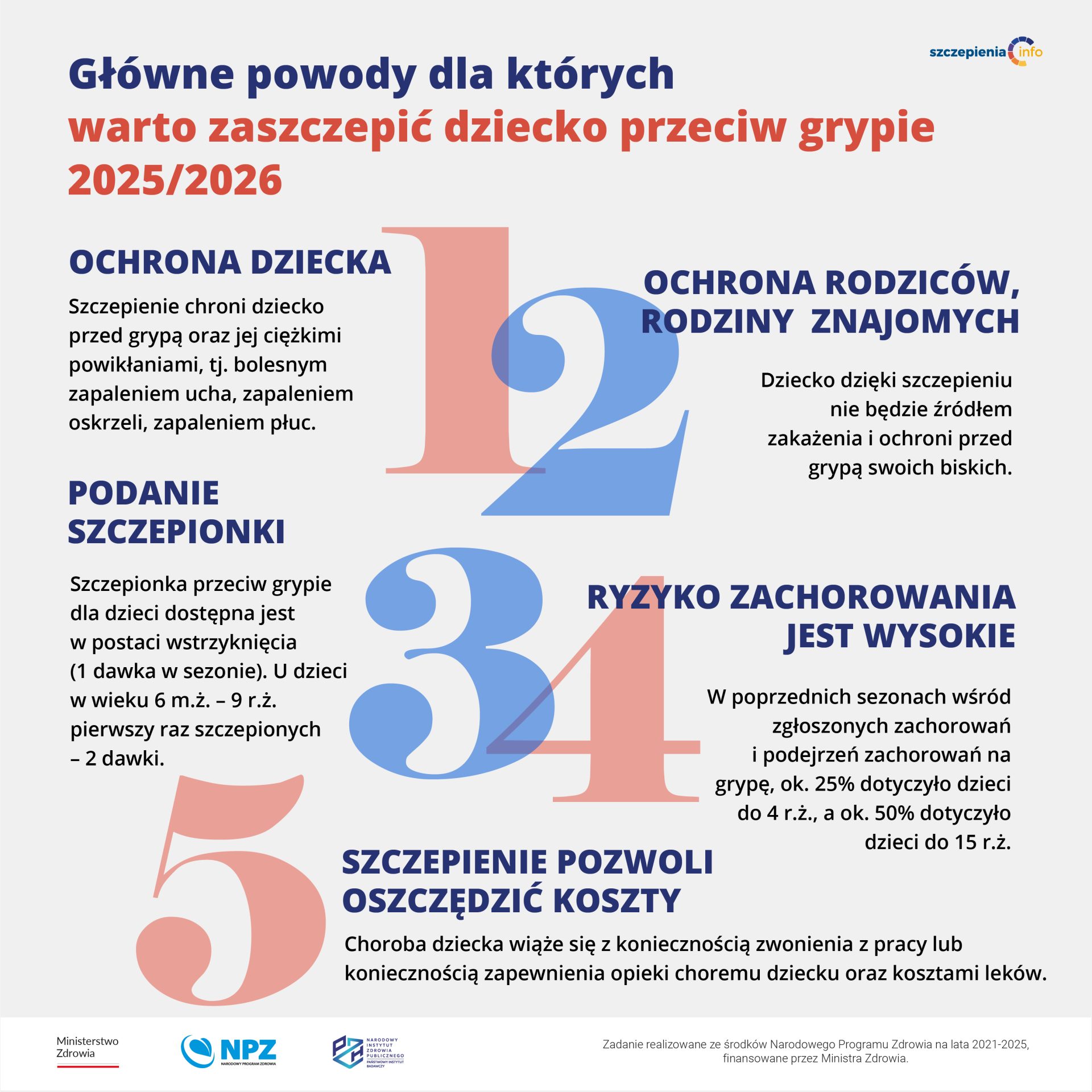 SZCZEPIONKI SĄ BEZPŁATNE. W sezonie 2025/2026 szczepionki przeciw grypie (we wstrzyknięciu) są bezpłatne dla dzieci i młodzieży do 18 lat. Potrzebna jest recepta na bezpłatną szczepionkę.