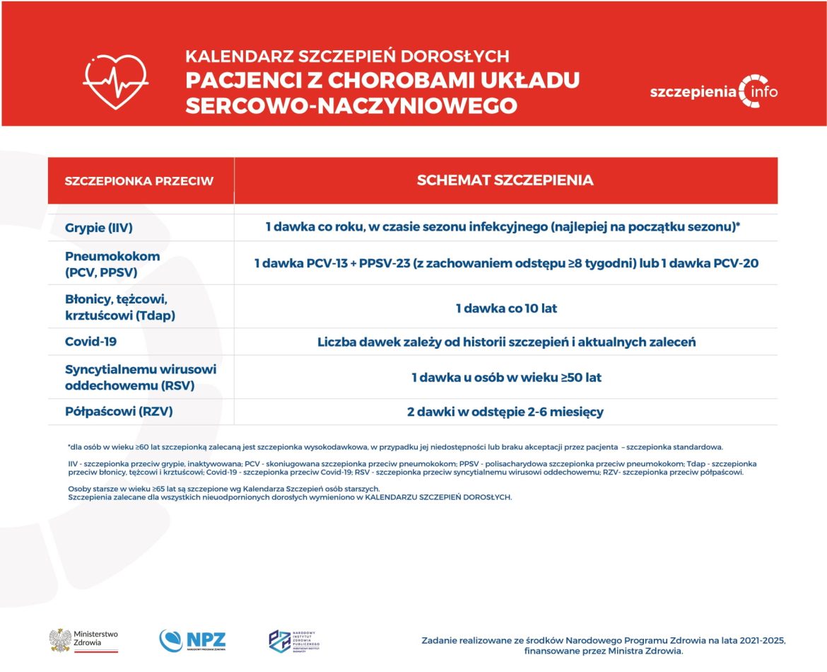 Kalendarz szczepień dorosłych - Pacjenci z chorobami układu sercowo-naczyniowego