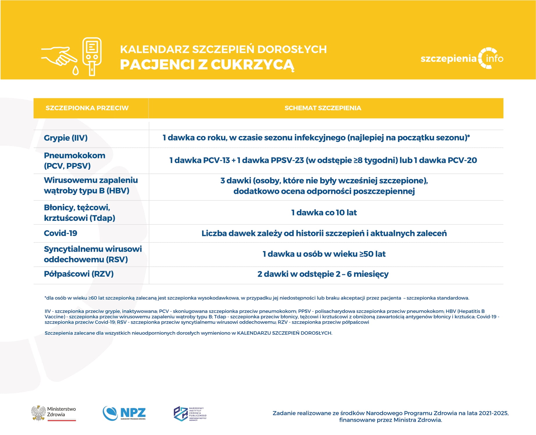 Kalendarz szczepień dorosłych - Pacjenci z cukrzycą