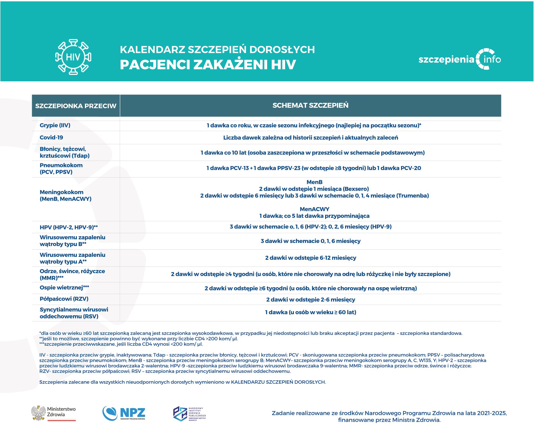 Kalendarz szczepień pacjentów zakażonych HIV (pdf)(pdf)