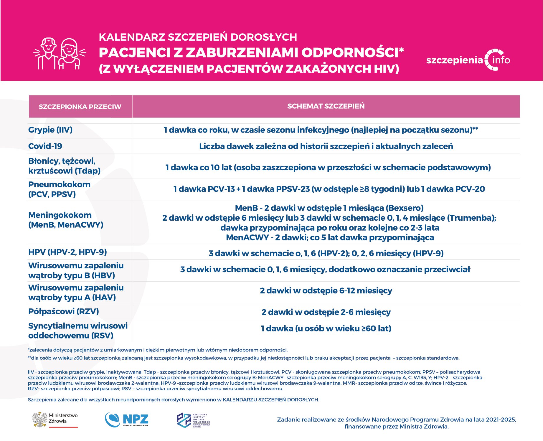Kalendarz szczepień pacjentów z zaburzeniami odporności