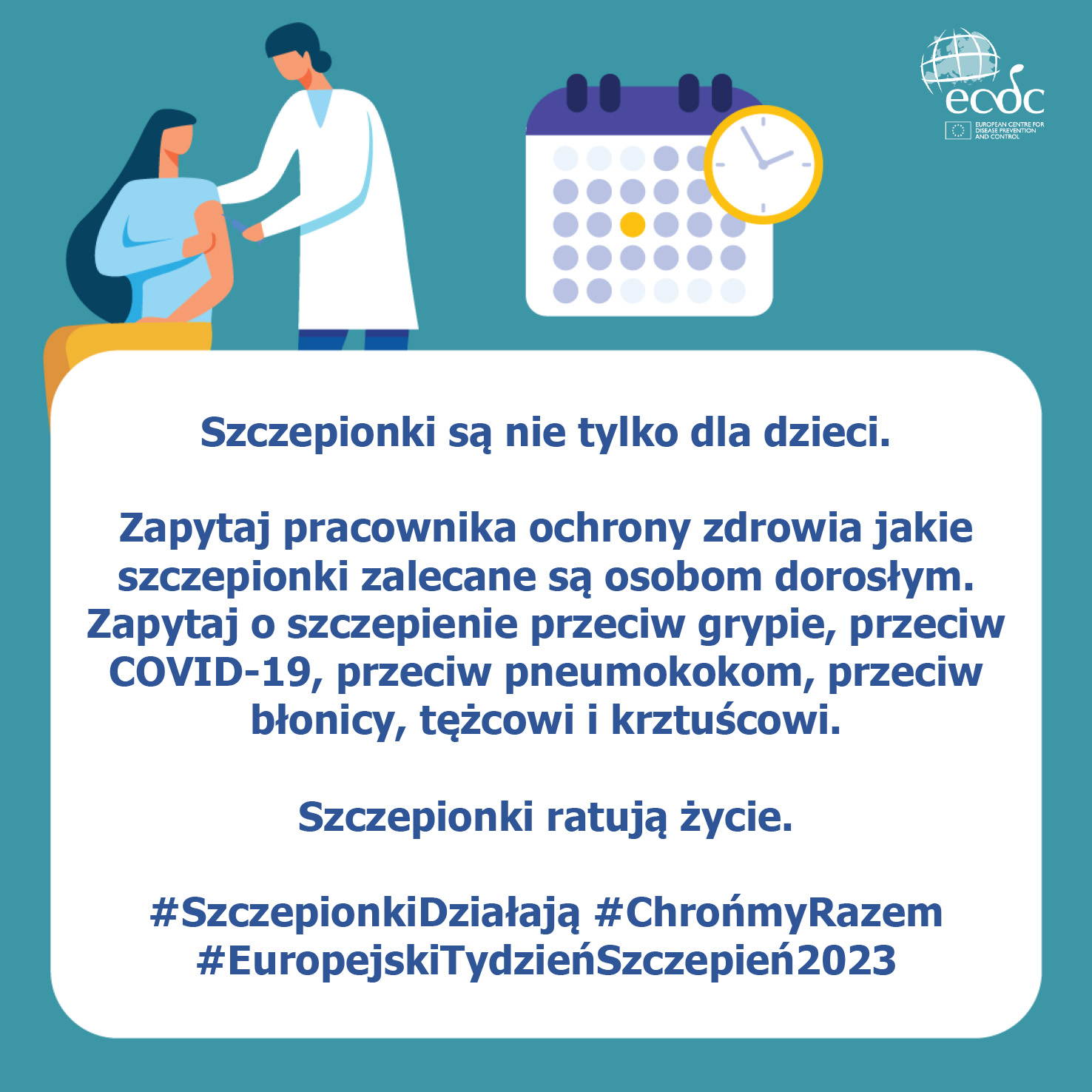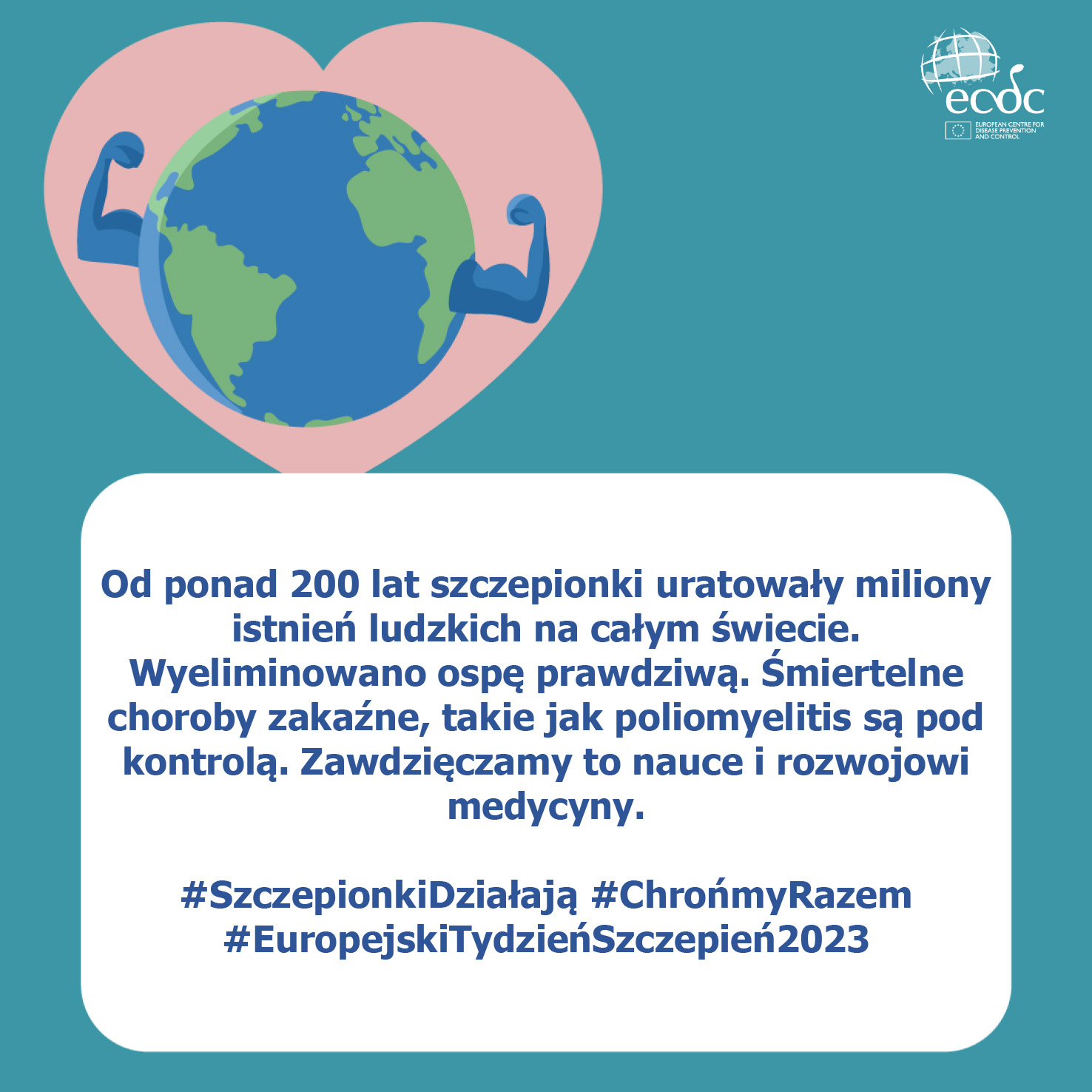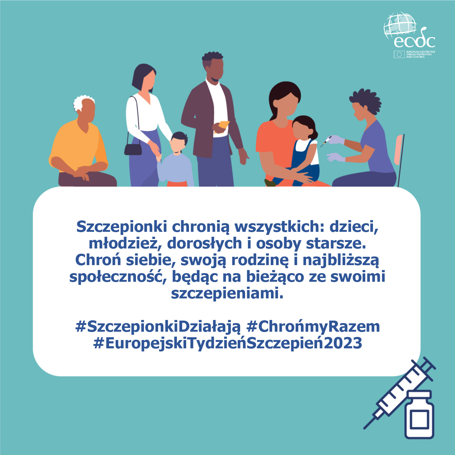 Europejskie Centrum ds. Zapobiegania i Kontroli Chorób (ECDC) udostępniło materiały z okazji Europejskiego Tygodnia Szczepień 2023. #Długieżyciedlawszystkich#LongLifeforAll to hasło tegorocznego Tygodnia Szczepień. 24 kwietnia ECDC organizuje konferencję prasową, udostępniło również serię infografik.