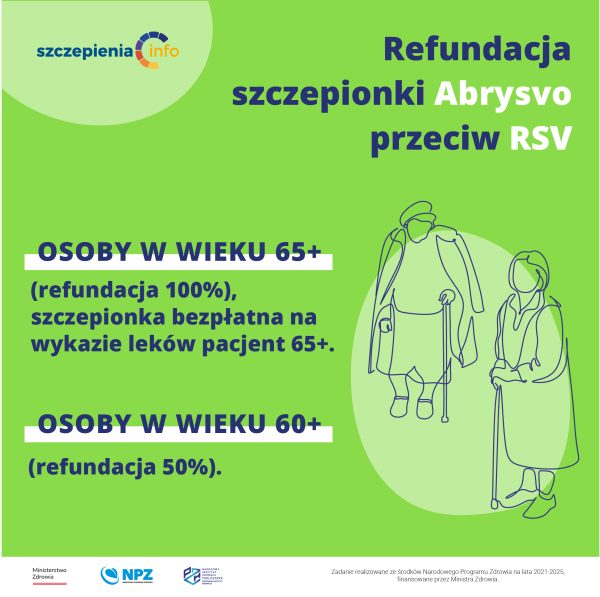 Od 1 kwietnia br. Ministerstwo Zdrowia obejmuje refundacją dwie kolejne szczepionki. Szczepionka przeciw RSV Abrysvo będzie bezpłatna dla kobiet w ciąży aby chronić niemowlęta oraz dla osób starszych w wieku 65+. Będzie również dostępna z 50% odpłatnością dla osób w wieku 60+. Szczepionka przeciw półpaścowi będzie dostępna z 50% odpłatnością dla pacjentów w wieku 18+, którzy mają zwiększone ryzyko zachorowania i będzie bezpłatna dla osób starszych w wieku 65+ o zwiększonym ryzyku zachorowania na półpasiec.