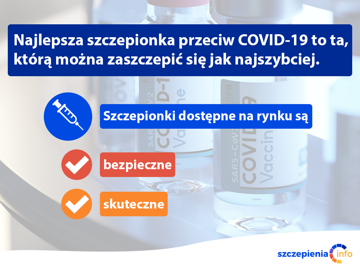 Najlepszą obecnie szczepionką przeciw COVID-19, jest ta którą można zaszczepić się jak najszybciej.