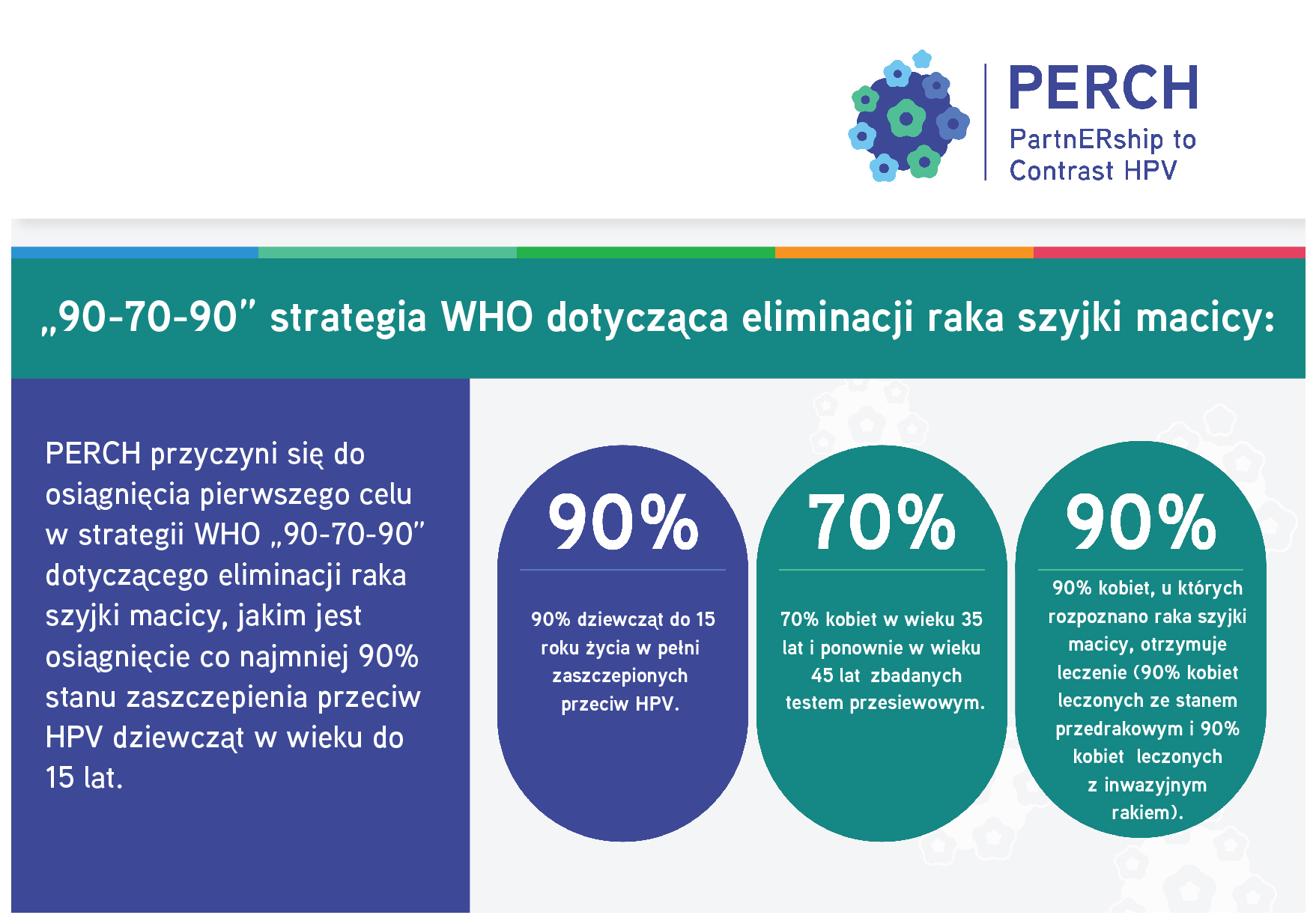 Głównym zadaniem projektu PERCH jest wsparcie europejskiego planu walki z rakiem poprzez wspieranie wysiłków państw członkowskich na rzecz rozszerzenia powszechnych szczepień przeciw HPV dziewcząt i chłopców w celu wyeliminowania raka szyjki macicy i innych nowotworów związanych z HPV w najbliższej dekadzie.