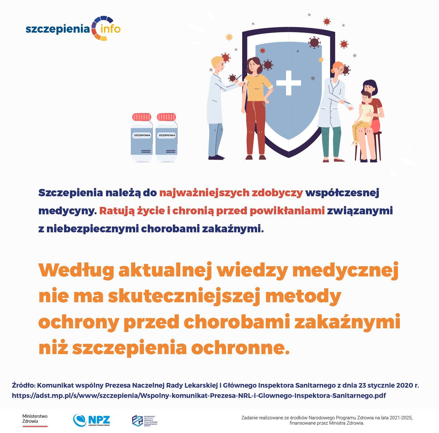 W związku z docierającymi do Naczelnej Izby Lekarskiej i Głównego Inspektora Sanitarnego informacjami o tym, że lekarze wykonujący obowiązkowe szczepienia ochronne coraz częściej spotykają się z odmową realizacji szczepienia do czasu spełnienia przez lekarza różnych żądań, w tym udzielenia bardzo szczegółowych informacji, które nie mieszczą się w zakresie lekarskiego badania kwalifikacyjnego do szczepienia, a jednocześnie aby podkreślić, że nie ma skuteczniejszej metody ochrony przed chorobami zakaźnymi niż szczepienia ochronne, Prezes Naczelnej Rady Lekarskiej oraz Główny Inspektor Sanitarny wydali wspólne stanowisko.