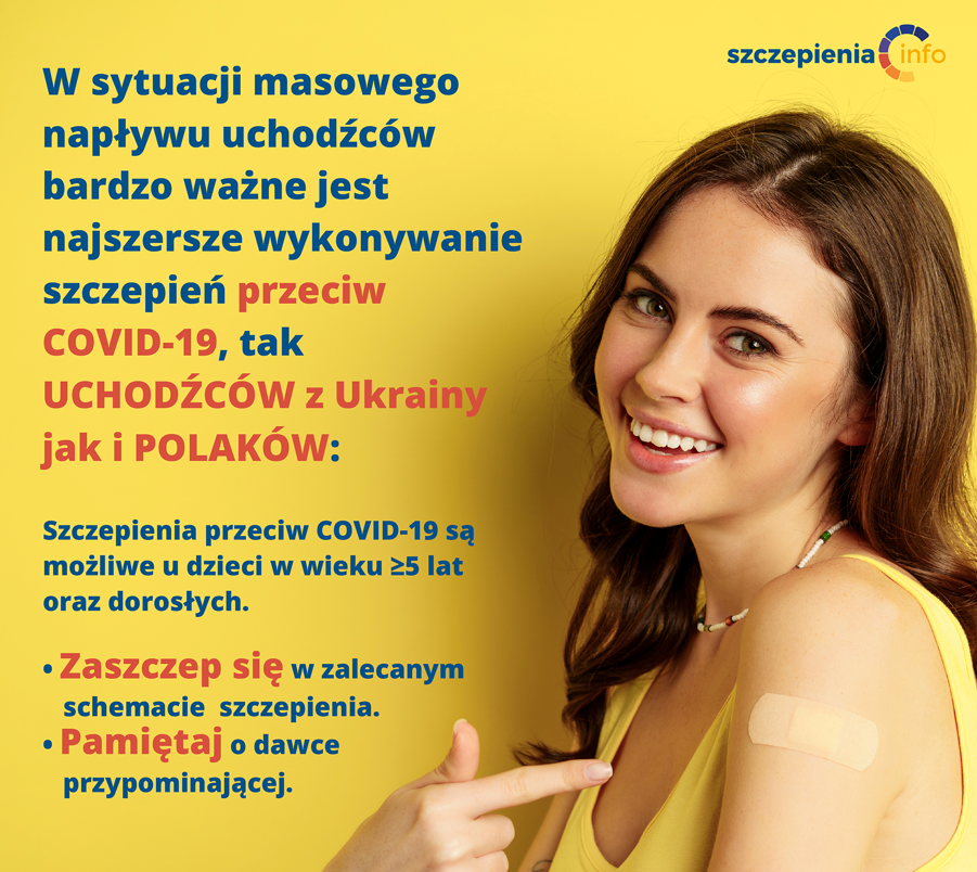 Każdy obywatel Ukrainy, który dotychczas nie skorzystał ze szczepienia przeciw COVID-19, a wiemy, że takich osób jest sporo, może bez przeszkód przyjąć cały cykl szczepień w Polsce. To jest wyraz naszej troski o najbliższych nam sąsiadów – powiedział Adam Niedzielski, Minister Zdrowia. Przeciw COVID-19 zaszczepić się może każda chętna osoba powyżej 18. roku życia, a także dzieci, które skończyły 5 lat.