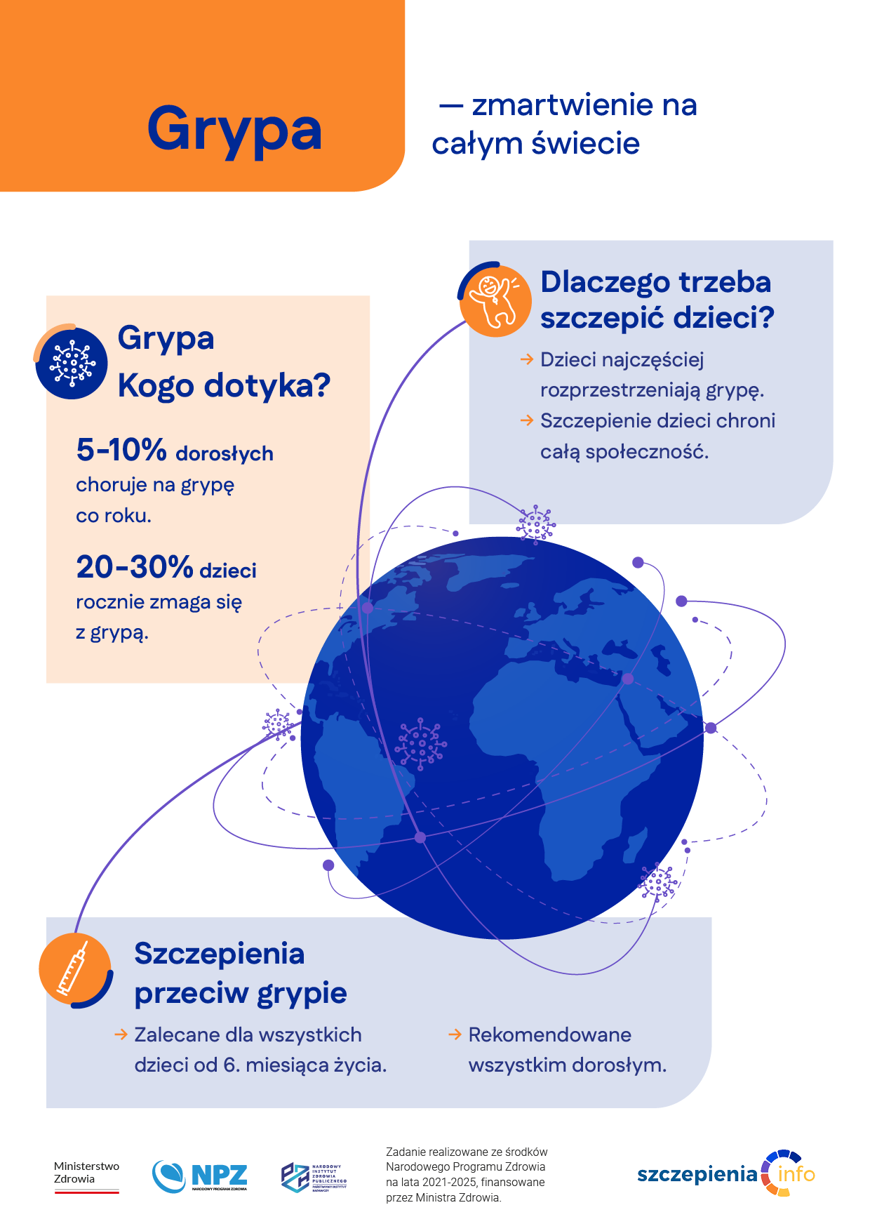 W Polsce nie ma obowiązkowych (finansowanych z budżetu Ministra Zdrowia) szczepień przeciw grypie.