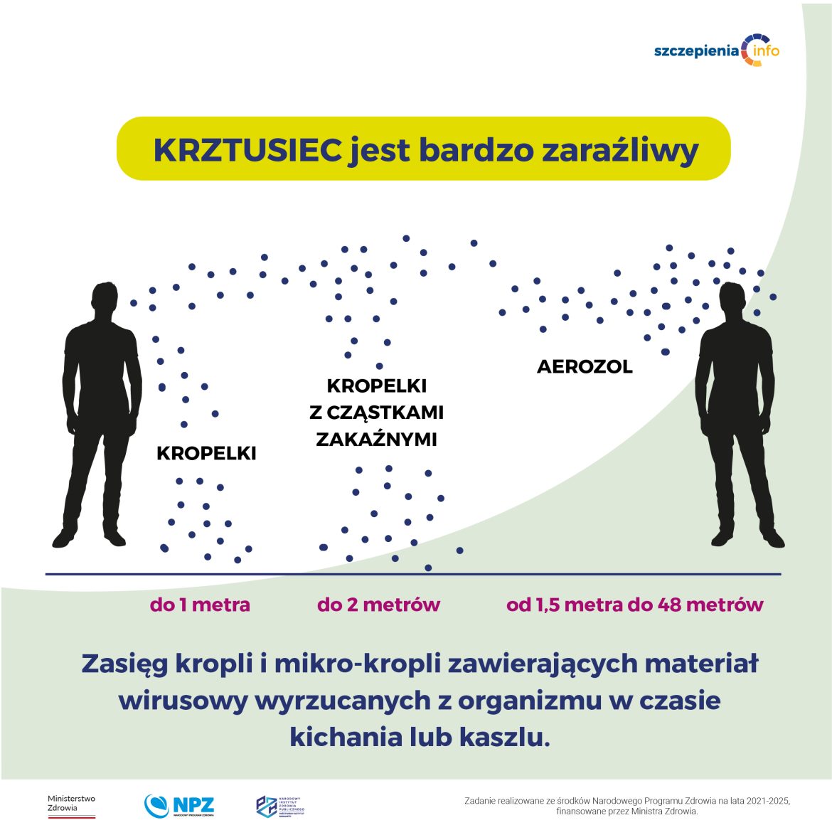 Krztusiec cechuje się wyjątkowo wysoką zaraźliwością, po kontakcie z chorym zakazi się ok. 80% osób.