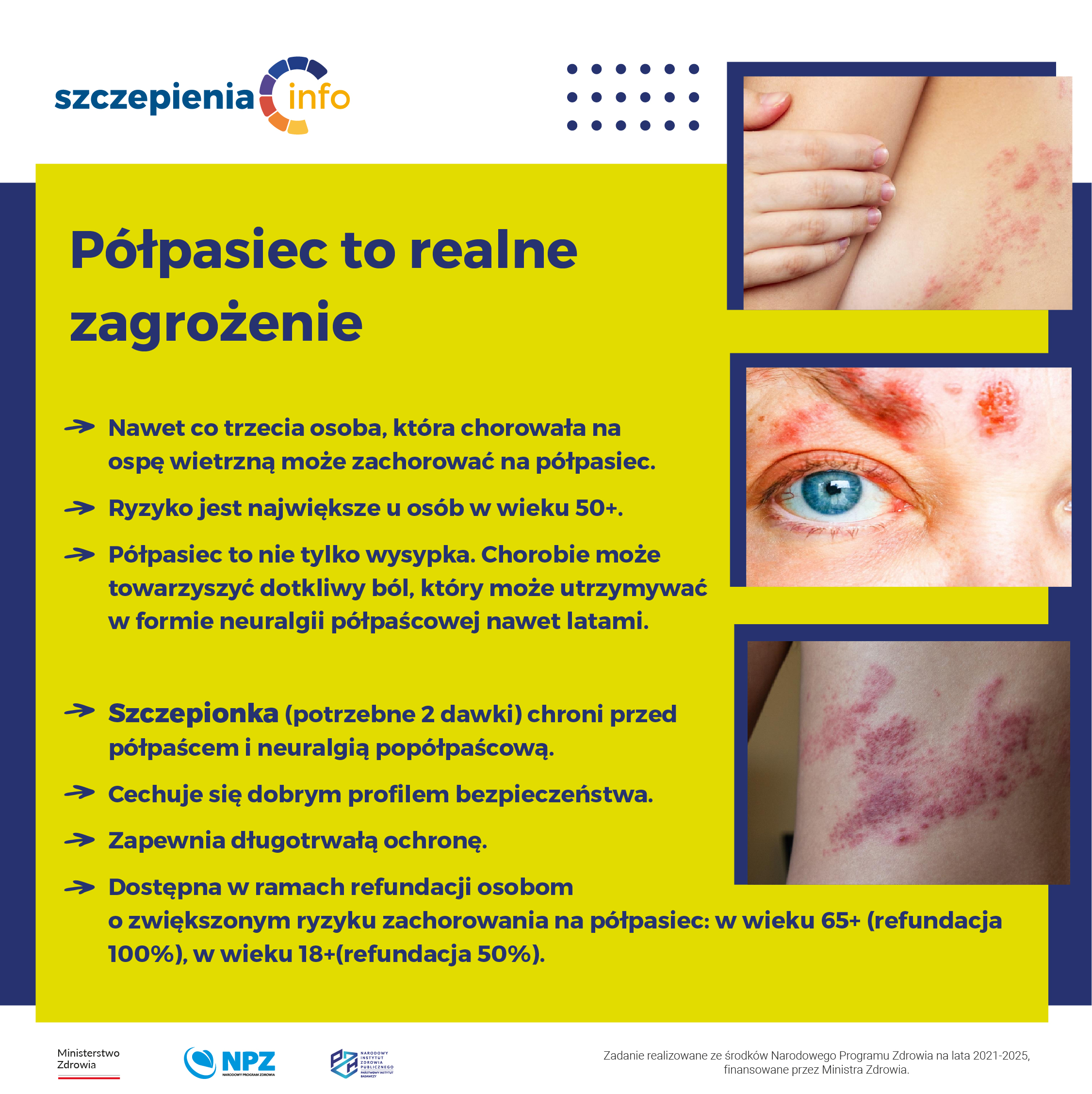 Półpasiec jest reaktywacją uśpionego, przewlekłego zakażenia wirusem ospy wietrznej i półpaśca (VZV), do którego dochodzi po osłabieniu odporności, co zwykle ma miejsce wiele lat po przebyciu ospy wietrznej. Choroba dotyczy głównie osób >50. roku życia oraz osób z obniżoną odpornością. Powinniśmy zachęcać osoby starsze do szczepień przeciw półpaścowi. W obliczu starzejącego się społeczeństwa, dłuższym przewidywanym życiu oraz znacznie większej liczbie osób w stanie immunosupresji, należy spodziewać się zwiększenia liczby zachorowań na półpasiec.