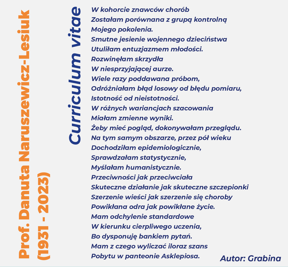 Serokowa D. Jubileusz 50-lecia pracy profesora zw. dr hab. nauk med. Danuty Naruszewicz-Lesiuk. Epidemiological review 2005, 59(4): V-VI.