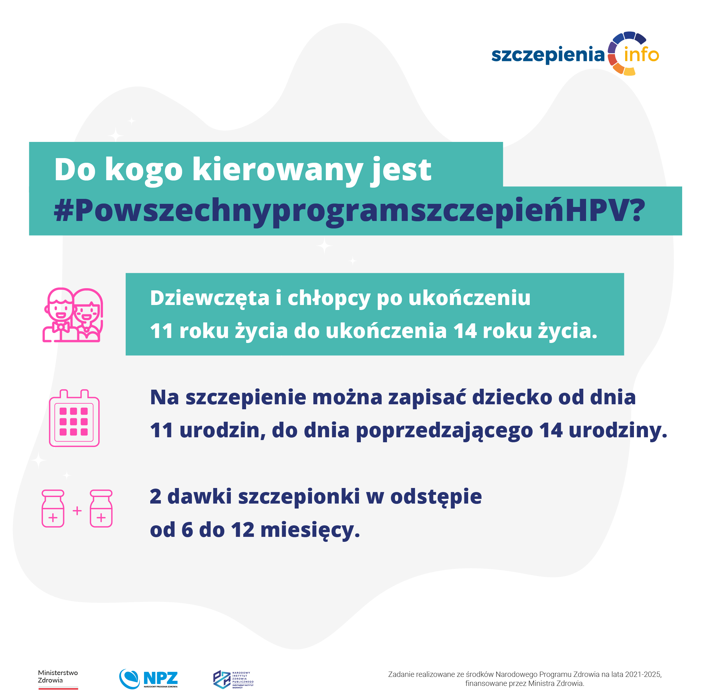 Wiek dzieci, których dotyczy program zastąpiono rozszerzonym zapisem: Powszechny program bezpłatnych szczepień przeciw HPV jest skierowany do dziewcząt i chłopców po ukończeniu 11. roku życia do ukończenia 14. roku życia.