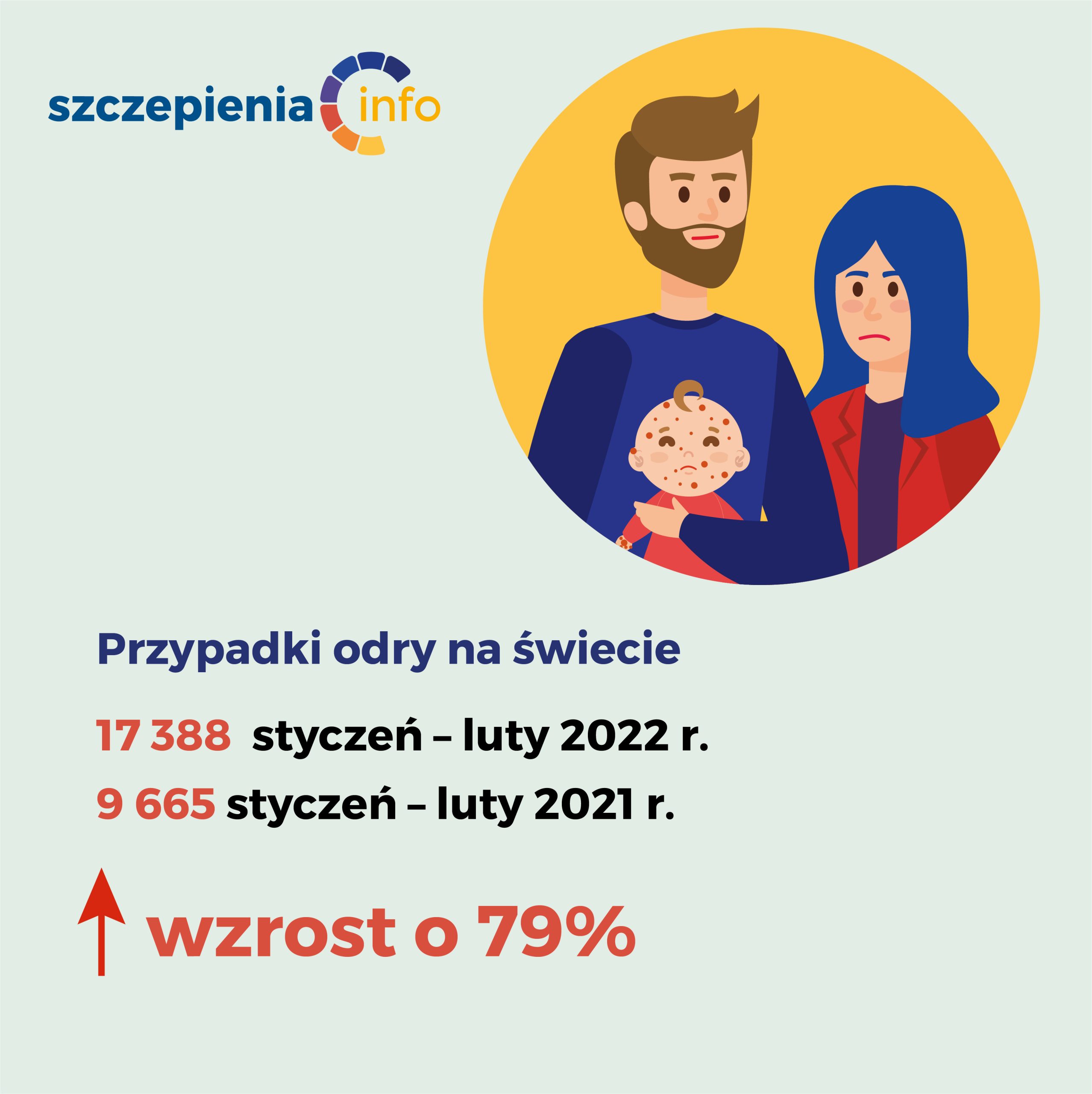Liczba przypadków odry, choroby przed którą chronią szczepienia, wzrosła na świecie o 79%, w ciągu pierwszych 2 miesięcy 2022 roku, w porównaniu z tym samym okresem w 2021 roku. WHO i UNICEF uczulają, że niedostateczny stan zaszczepienia sprzyja wybuchom poważnych epidemii chorób zakaźnych. W komunikacie z dnia 27 kwietnia 2022 roku informują o wzroście liczby zachorowań na odrę w styczniu i lutym 2022 r. podkreślając, że jest to niepokojący sygnał występowania zwiększonego ryzyka rozprzestrzeniania się chorób, przed którymi chronią szczepienia.