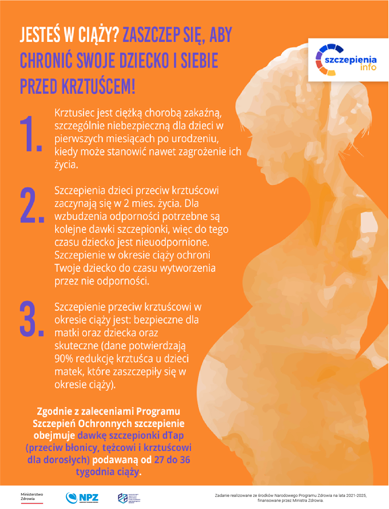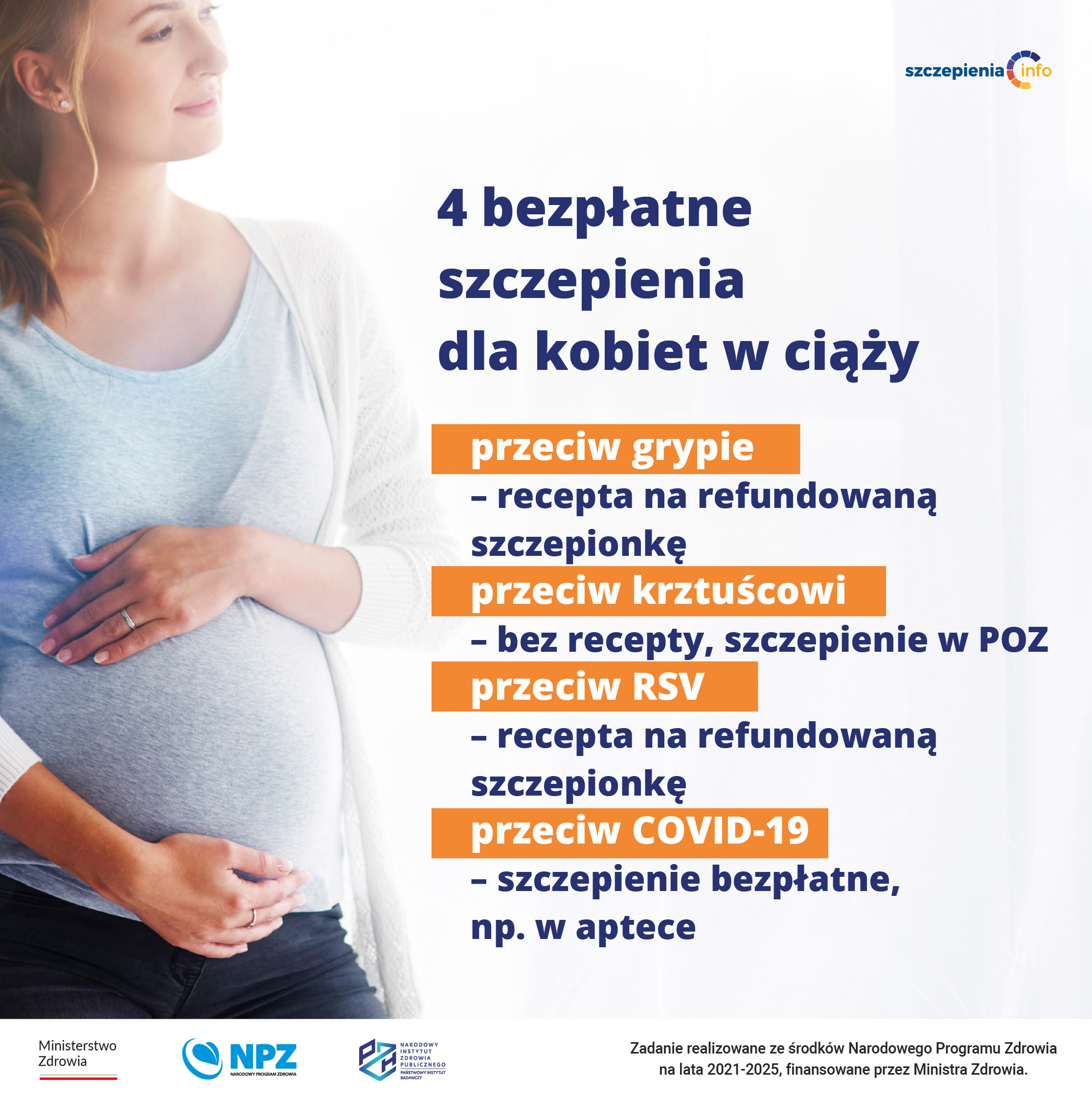 W ciąży można podawać szczepionki inaktywowane (przeciw grypie, przeciw krztuścowi, przeciw RSV, przeciw COVID-19).
