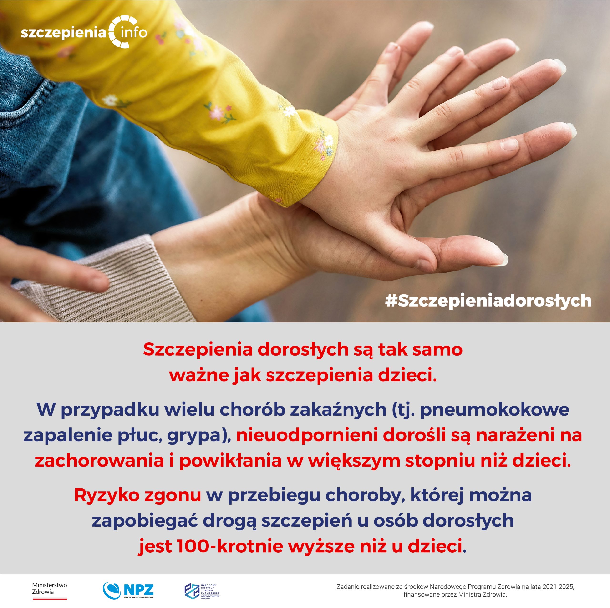 Osoby dorosłe powinny szczepić się przeciw grypie, ponieważ nigdy nie jesteśmy w stanie przewidzieć przebiegu zachorowania, może być łagodne ale może mieć także ciężki przebieg.